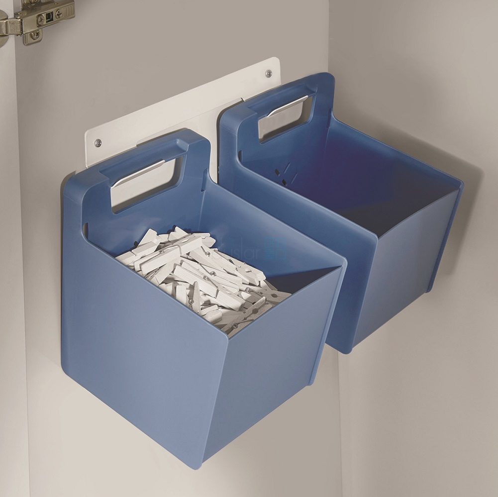 • В комплект входит крепление и фурнитура. Можно установить как на стену, так и на боковину шкафа. Контейнеры легко снять и перенести в удобное место.