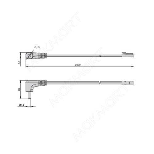 Кабель соединительный 2000 мм для Led Linear/Led Linear Touch с разъёмом JACK «папа» (угловой 90°)